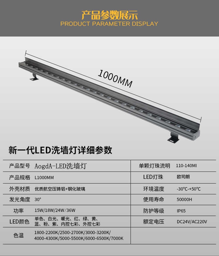 24W:長度為1米;36W:長度為1米;